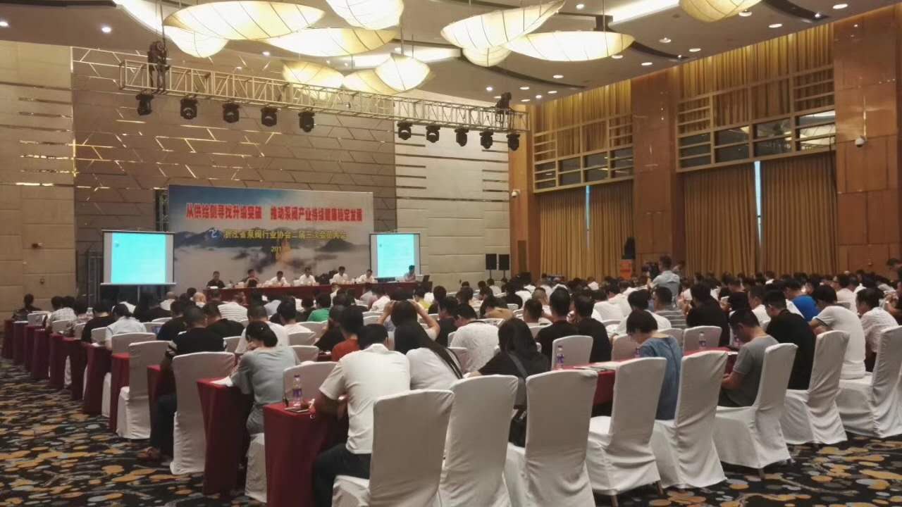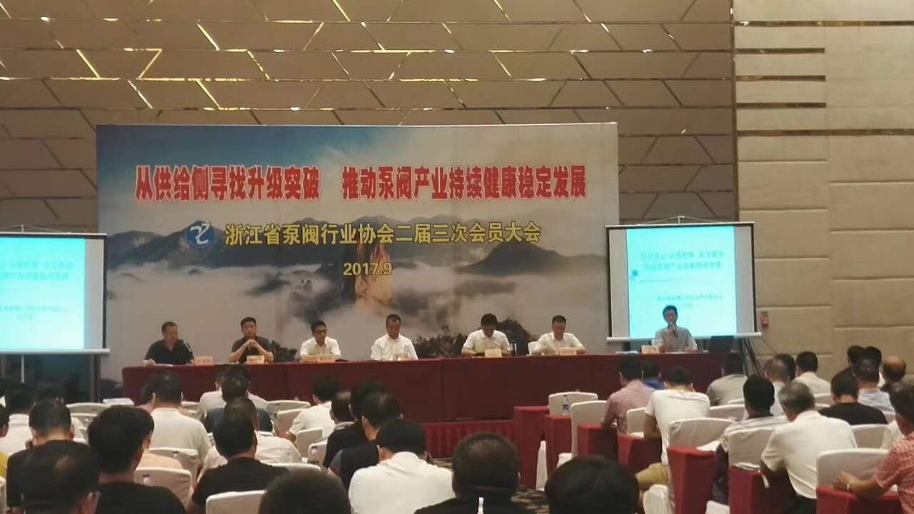 2017年9月22日下午,浙江省泵閥行業協會二屆三次會員大會在永嘉縣甌北鉑爾曼酒店隆重舉行。會議主題是“從供給側尋找升級突破 推動泵閥產業持續健康穩定發展”,中國通用機械工業協會閥門分會秘書長宋銀立,永嘉縣委副書記、永嘉縣人民政府縣長林萬樂,永嘉縣人民政府副縣長董慶標,溫州系統流程裝備科學研究院院長、黨委書記胡宋孝等領導嘉賓參加了此次會議。